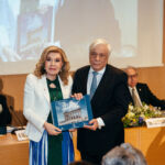 Αμέσως μετά η κυρία Βαρδινογιάννη επέδωσε το πρώτο αντίτυπο του λευκώματος για τα Μνημεία Παγκόσμιας Κληρονομιάς στον Πρόεδρο της Δημοκρατίας.