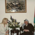In addition, Mrs. Vardinoyannis had a formal meeting with the President of the Palistinian Authority Mr. Yasser Arafat in Ramallah. During this meeting, which lasted over half an hour, President Arafat congratulated Mrs. Vardinoyannis for her humanitarian work and exchanged with her views about peace, civilization and social solidarity related issues.