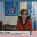 Εκπροσωπώντας τη Γενική Διευθύντρια της UNESCO κυρία Audrey Azoulay, στην εκδήλωση απηύθυνε χαιρετισμό η Διευθύντρια του Τμήματος Ισότητας των Φύλων της UNESCO κυρία Jamila Seftaoui η οποία μίλησε αναλυτικά για τις προκλήσεις που αντιμετώπισαν οι μητέρες σε ολόκληρο τον κόσμο εξαιτίας της πανδημίας και τόνισε πως η παγκόσμια κοινότητα θα πρέπει να προχωρήσει σε λήψη αποφάσεων για τη στήριξη των γυναικών και της μητρότητας:  «Είναι φανερό πως τα κράτη πρέπει να ξαναδούν και να εφαρμόσουν ενδεικτικά τις δεσμεύσεις του Πεκίνου, τους Στόχους της Βιώσιμης Ανάπτυξης, της Ατζέντας 2063 , αλλά και τη βασική δέσμευση για σεβασμό των ανθρωπίνων δικαιωμάτων, της ισότητας των φύλων και της ενδυνάμωσης των γυναικών.  Πακέτα οικονομικής στήριξης από την πανδημία θα πρέπει να δοθούν στοχευμένα για τη στήριξη των γυναικών, θα πρέπει να ξαναδούμε τα δικαιώματα των γυναικών στην αγορά εργασίας.  Οι μητέρες θα πρέπει να έχουν την ευκαιρία για πρόσβαση σε χρηματοδοτικά και ψηφιακά εργαλεία για τη δημιουργία επιχειρήσεων.  Πρέπει να εγγυηθούμε το ασφαλές άνοιγμα των σχολείων.  Ήδη, το πρόγραμμα Global Education Coalition της UNESCO έχει ως στόχο να υποστηρίξει 175 κυβερνήσεις, φορείς και οργανισμούς σε αυτή την κατεύθυνση για να επιστρέψουν στο σχολείο χιλιάδες κορίτσια.  Οι άνδρες πρέπει να συμμετέχουν σε αυτή την προσπάθεια.  Η ευθύνη των ανδρών για ένα κόσμο ισότητας φύλων και ίσων ευκαιριών είναι σημαντικός για τους ίδιους και για ολόκληρες τις κοινωνίες μας.  Η αντιμετώπιση της «επόμενης ημέρας της πανδημίας» δεν θα είναι επιτυχής χωρίς τις γυναίκες!».
