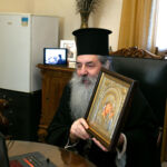 Και τώρα επίτρεψέ μου ένα μικρό δώρο, την εικόνα της Παναγίας της Θεοτόκου, να σας ευλογεί εσένα και τον αγαπητό κύριο Βαρδινογιάννη, τον Βαρδή μας, και όλη σας την οικογένεια, τα παιδιά και τα εγγόνια σας, και όλο το έργο και όλους τους ομίλους, και όλη την προσπάθεια. Η Χάρη της Θεοτόκου να είναι πάντα παρούσα στη ζωή σας. Ευγνωμονώ για όλα. Είναι  ένα μικρό, ελάχιστο αντίδωρο ευγνωμοσύνης.