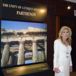 During the opening ceremony, Mrs. Vardinoyannis stressed in her speech: In an era where violence in every form prevails all over the world, moderation and total harmony become ever more the ultimate values of civilization, as the ideal attitude of life towards a peace culture. The Parthenon constitutes precisely the expression of the moderation and total harmony. The symbol of democracy and freedom. That is why I feel that through this exhibition on the Parthenon marbles and especially, through UNESCO, whose symbol is rightly the Parthenon and the its values, we have the unique opportunity to send to the whole world a message which is ancient and modern at the same time: respect among the peoples. This is the only message which can lead to a world of moderation and balance, a world of world harmony and peace.