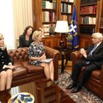 Τέλος ο Πρόεδρος της Δημοκρατίας ευχαρίστησε τις δύο κυρίες για την επίσκεψή τους και αποχαιρετώντας τες θέλησε να στείλει ένα σημαντικό μήνυμα: «Κυρία Kennedy να μεταφέρετε στη χώρα σας, τη μεγάλη χώρα σας, τις Ηνωμένες Πολιτείες, με αυτό το «βαρύ», πραγματικά, όνομά σας, αλλά και τη δική σας πολύ μεγάλη ιστορία, ότι όλος ο πολιτισμένος κόσμος πρέπει να έχει δύο στόχους αυτή τη στιγμή: Πρώτον, να τελειώσουμε με τον ΙSIS. Δεν είναι νοητό για τον Πολιτισμό και τη Δημοκρατία μας να υπάρχει αυτή η εστία νέας βαρβαρότητας, που λέγεται ISIS. Και, δεύτερον, πρέπει να τελειώσει άμεσα ο πόλεμος και να επανέλθουν οι πρόσφυγες στις εστίες τους. Γιατί αυτοί οι πρόσφυγες – και αυτό είναι μια πολύ μεγάλη ιδιομορφία – δεν έφυγαν αναζητώντας την μοίρα τους σε άλλες χώρες της Ευρώπης. Έφυγαν γιατί υπήρχε ο πόλεμος. Άρα, η δικαίωσή τους δεν σημαίνει απλώς να τους παράσχουμε φιλοξενία εδώ. Είναι να τους εξασφαλίσουμε τις εστίες τους, τις οποίες τις στερήθηκαν χωρίς τη θέλησή τους. Αυτό είναι ένα πολύ σημαντικό μήνυμα που πρέπει όλη η κοινή γνώμη στις Ηνωμένες Πολιτείες να το αντιληφθεί το συντομότερο δυνατό. Ευχαριστώ πολύ».