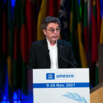 Ο Γενικός Γραμματέας της Ακαδημίας Αθηνών και Ειδικός Εντεταλμένος της Ελλάδας για το Κλίμα Ακαδημαϊκός Χρήστος Ζερεφός μίλησε για την ανάγκη προστασίας της πολιτιστικής κληρονομιάς από την κλιματική αλλαγή. Παρουσίασε στοιχεία της μεγάλης έρευνας που πραγματοποιεί η Ακαδημία Αθηνών για την επιρροή της κλιματικής αλλαγής σε 275 κορυφαία μνημεία του οικουμενικού πολιτισμού αναφέροντας ενδεικτικά την εξέλιξη των ακραίων καιρικών φαινομένων, των δασικών πυρκαγιών και της ανόδου της στάθμης της θάλασσας, τονίζοντας πως τα μνημεία μας «είναι απόλυτα ευάλωτα». «Θα συνεχίσουμε την πρωτοποριακή έρευνα που πραγματοποιείται στην Ακαδημία Αθηνών, με εντολή της Ελληνικής Κυβέρνησης και με ανταγωνιστικούς πόρους από το εξωτερικό, για την επιρροή που έχει η κλιματική αλλαγή. Ελπίζω ότι θα μπορούμε να μελετήσουμε ακόμα περισσότερα μνημεία και να φτάσουμε ακόμα και πολλές άλλες εκατοντάδες μνημείων. Και θα ήθελα να ευχαριστήσω τη Γενική Διευθύντρια της UNESCO κυρία Audrey Azoulay και την Πρέσβη Καλής Θελήσεως της UNESCO που αγκαλιάζουν αυτή την πρωτοβουλία. Το συμπέρασμα είναι ένα: ότι τα Μνημεία της UNESCO απειλούνται πολύ σοβαρά από την κλιματική αλλαγή!»