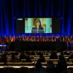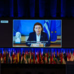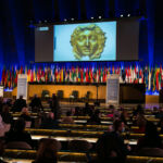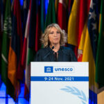 Παράλληλα, η κυρία Βαρδινογιάννη, μιλώντας στα Γαλλικά, ευχαρίστησε θερμά τη Γενική Διευθύντρια της UNESCO Audrey Azoulay που από την πρώτη στιγμή στήριξε το Συμπόσιο το οποίο μάλιστα έθεσε υπό την αιγίδα της και τη συνεχάρη για την επανεκλογή της στη Γενική Διεύθυνση της UNESCO. «Θα ήθελα να συγχαρώ την κυρία Audrey Azoulay, Γενική Διευθύντρια της UNESCO, για τη δέσμευσή της σε αυτή τη σημαντική αποστολή που της έχει ανατεθεί. Η προσωπική της προσφορά στο τεράστιο έργο του Οργανισμού καθώς και η επανεκλογή της αποτελούν απόδειξη της μεγάλης εμπιστοσύνης που της έχουν δείξει όλα τα έθνη της UNESCO. Θα ήθελα μέσα από την καρδιά μου να την ευχαριστήσω για την υποδοχή, τη φιλοξενία της και για το γεγονός ότι έθεσε υπό την αιγίδα της αυτή την εκδήλωση, που τιμά τη χώρα μας».