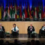 Η Πρύτανης Ελένη Αρβελέρ, βυζαντινολόγος και Πρόεδρος του Ευρωπαϊκού Πολιτιστικού Κέντρου Δελφών πραγματοποίησε ομιλία με τίτλο «Βυζάντιο και Ρωμιοσύνη: Ο δρόμος για την Ελληνική Εθνική και Πολιτιστική Ταυτότητα». «Θέλω να ευχαριστήσω τη Μαριάννα Βαρδινογιάννη που μου έδωσε την ευκαιρία να μιλήσω σε αυτό το Συμπόσιο. Ο Paul Valéry έγραψε πως οι Ευρωπαίοι επηρεάστηκαν, όπως κι εκείνος, από την ελληνική σκέψη, τη ρωμαϊκή νομοθεσία και έζησαν σύμφωνα με την χριστιανική πνευματικότητα. Αθήνα, Ρώμη, Ιερουσαλήμ είναι η βάση του Ευρωπαϊκού Πολιτισμού και με οδηγούν να πω ότι το Βυζάντιο είναι η πρώτη Ευρωπαϊκή αυτοκρατορία» είπε ανάμεσα σε άλλα η Πρύτανης Αρβελέρ.